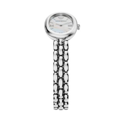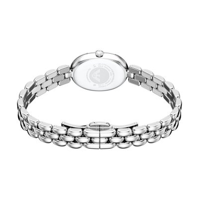 Diese Emporio Armani Uhr hat ein Edelstahl Gehäuse mit einem Durchmesser von 28 mm und ist mit einem Armband aus Edelstahl versehen. In der Uhr arbeitet ein Seiko Uhrwerk. Das Glas der Uhr besteht aus Mineral - Glas.