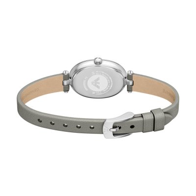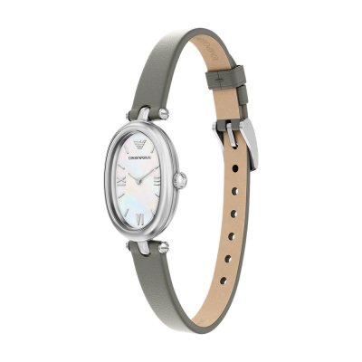 Diese Emporio Armani Uhr hat ein Edelstahl Gehäuse mit einem Durchmesser von 28 mm und ist mit einem Armband aus Leder versehen. In der Uhr arbeitet ein Seiko Uhrwerk. Das Glas der Uhr besteht aus Mineral - Glas.