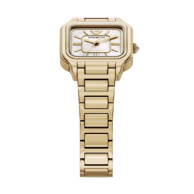 Diese Emporio Armani Uhr hat ein Edelstahl Gehäuse mit einem Durchmesser von 35 mm und ist mit einem Armband aus Edelstahl versehen. In der Uhr arbeitet ein Seiko Instruments Inc. Uhrwerk. Das Glas der Uhr besteht aus Mineral - Glas.
