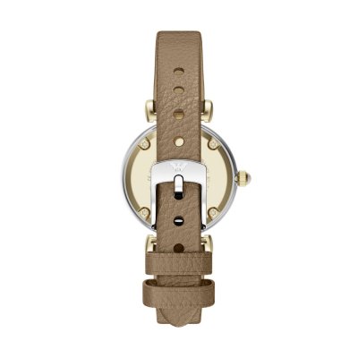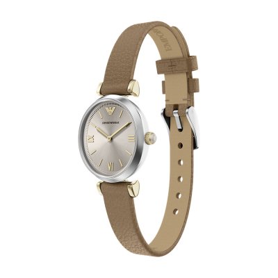 Diese Emporio Armani Uhr hat ein Edelstahl Gehäuse mit einem Durchmesser von 28 mm und ist mit einem Armband aus Leder versehen. In der Uhr arbeitet ein Seiko Instruments Inc. Uhrwerk. Das Glas der Uhr besteht aus Mineral - Glas.