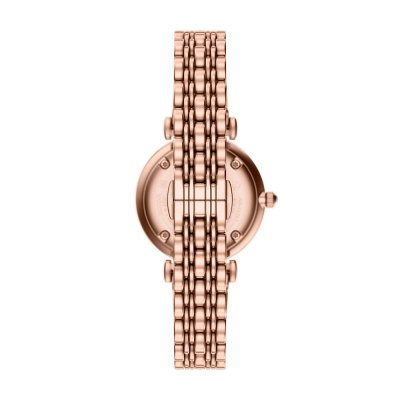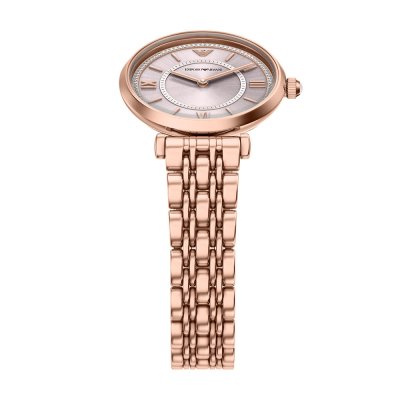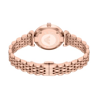 Diese Emporio Armani Uhr hat ein Edelstahl Gehäuse mit einem Durchmesser von 32 mm und ist mit einem Armband aus Edelstahl versehen. In der Uhr arbeitet ein Seiko Instruments Inc. Uhrwerk. Das Glas der Uhr besteht aus Mineral - Glas.