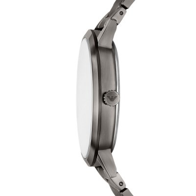 Diese Emporio Armani Uhr hat ein Edelstahl Gehäuse mit einem Durchmesser von 43 mm und ist mit einem Armband aus Edelstahl versehen. In der Uhr arbeitet ein Seiko Instruments Inc. Uhrwerk. Das Glas der Uhr besteht aus Mineral - Glas.
