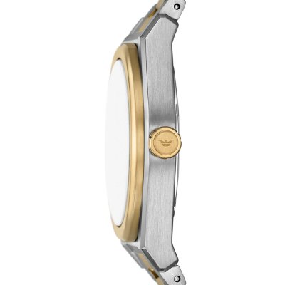 Diese Emporio Armani Uhr hat ein Edelstahl Gehäuse mit einem Durchmesser von 41 mm und ist mit einem Armband aus Edelstahl versehen. In der Uhr arbeitet ein Miyota Uhrwerk. Das Glas der Uhr besteht aus Mineral - Glas.