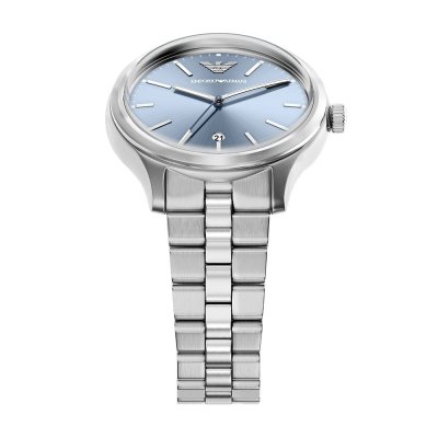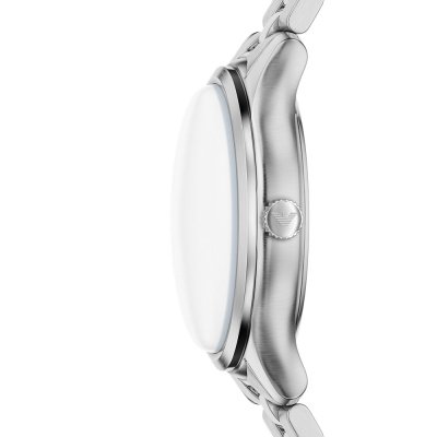 Diese Emporio Armani Uhr hat ein Edelstahl Gehäuse mit einem Durchmesser von 41 mm und ist mit einem Armband aus Edelstahl versehen. In der Uhr arbeitet ein Miyota Uhrwerk. Das Glas der Uhr besteht aus Mineral - Glas.