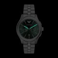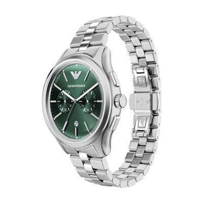 Diese Emporio Armani Uhr hat ein Edelstahl Gehäuse mit einem Durchmesser von 42 mm und ist mit einem Armband aus Edelstahl versehen. In der Uhr arbeitet ein Miyota Uhrwerk. Das Glas der Uhr besteht aus Mineral - Glas.