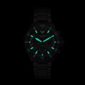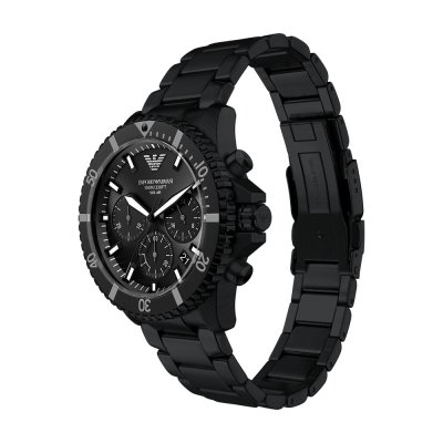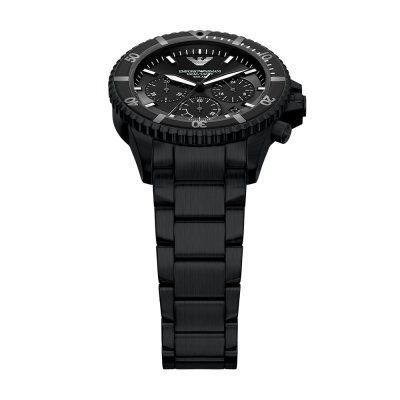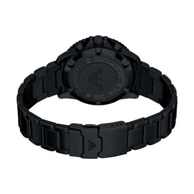 Diese Emporio Armani Uhr hat ein Edelstahl Gehäuse mit einem Durchmesser von 43 mm und ist mit einem Armband aus Edelstahl versehen. In der Uhr arbeitet ein Seiko Uhrwerk. Das Glas der Uhr besteht aus Mineral - Glas.