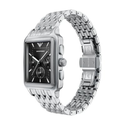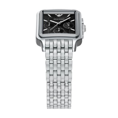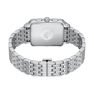 Diese Emporio Armani Uhr hat ein Edelstahl Gehäuse mit einem Durchmesser von 38 mm und ist mit einem Armband aus Edelstahl versehen. In der Uhr arbeitet ein Miyota Uhrwerk. Das Glas der Uhr besteht aus Mineral - Glas.