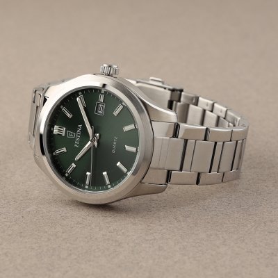 Diese Festina Uhr hat ein Edelstahl Gehäuse mit einem Durchmesser von 42 mm und ist mit einem Armband aus Edelstahl versehen. In der Uhr arbeitet ein Miyota Uhrwerk. Das Glas der Uhr besteht aus Mineral - Glas.