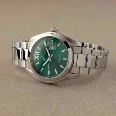Diese Festina Uhr hat ein Edelstahl Gehäuse mit einem Durchmesser von 40 mm und ist mit einem Armband aus Edelstahl versehen. In der Uhr arbeitet ein Miyota Uhrwerk. Das Glas der Uhr besteht aus Mineral - Glas.
