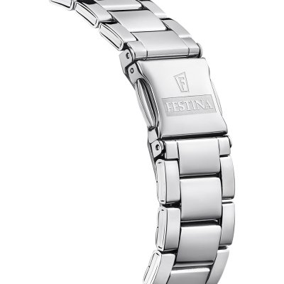 Diese Festina Uhr hat ein Edelstahl Gehäuse mit einem Durchmesser von 37 mm und ist mit einem Armband aus Edelstahl versehen. In der Uhr arbeitet ein Miyota Uhrwerk. Das Glas der Uhr besteht aus Mineral - Glas.