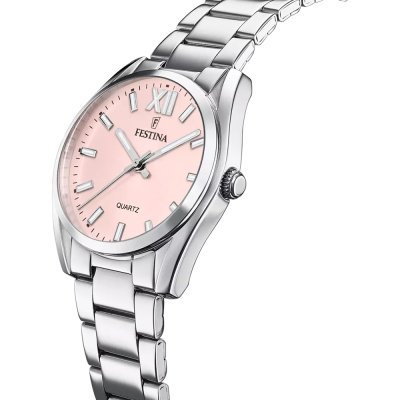 Diese Festina Uhr hat ein Edelstahl Gehäuse mit einem Durchmesser von 36 mm und ist mit einem Armband aus Edelstahl versehen. In der Uhr arbeitet ein Miyota Uhrwerk. Das Glas der Uhr besteht aus Mineral - Glas.