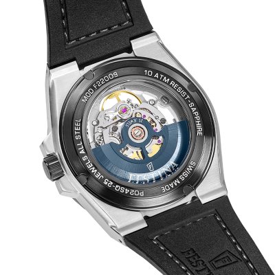 Diese Festina Uhr hat ein Edelstahl Gehäuse mit einem Durchmesser von 42 mm und ist mit einem Armband aus Kautschuk versehen. In der Uhr arbeitet ein Soprod Uhrwerk. Das Glas der Uhr besteht aus Sapphir - Glas.