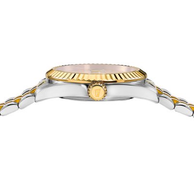 Schweizer Automatikuhr mit kannelierter Lünette und Datumslibelle