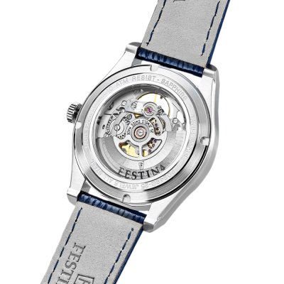 Diese Festina Uhr hat ein Edelstahl Gehäuse mit einem Durchmesser von 40 mm und ist mit einem Armband aus Leder versehen. In der Uhr arbeitet ein Soprod Uhrwerk. Das Glas der Uhr besteht aus Sapphir - Glas.