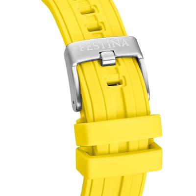 Diese Festina Uhr hat ein Edelstahl Gehäuse mit einem Durchmesser von 46 mm und ist mit einem Armband aus Kautschuk versehen. In der Uhr arbeitet ein Miyota Uhrwerk. Das Glas der Uhr besteht aus Mineral - Glas.