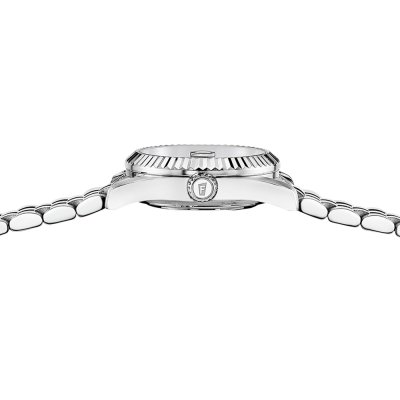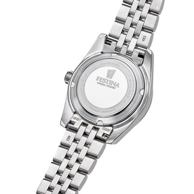 Diese Festina Uhr hat ein Edelstahl Gehäuse mit einem Durchmesser von 29 mm und ist mit einem Armband aus Edelstahl versehen. In der Uhr arbeitet ein Ronda Uhrwerk. Das Glas der Uhr besteht aus Sapphir - Glas.
