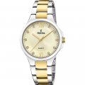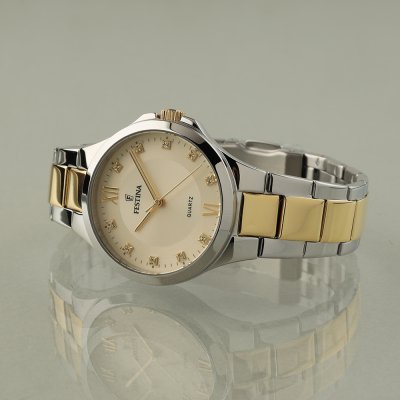 Diese Festina Uhr hat ein Edelstahl Gehäuse mit einem Durchmesser von 34 mm und ist mit einem Armband aus Edelstahl versehen. In der Uhr arbeitet ein Miyota Uhrwerk. Das Glas der Uhr besteht aus Mineral - Glas.
