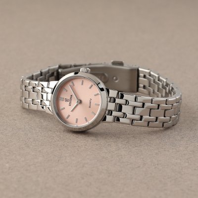 Diese Festina Uhr hat ein Edelstahl Gehäuse mit einem Durchmesser von 23 mm und ist mit einem Armband aus Edelstahl versehen. In der Uhr arbeitet ein Miyota Uhrwerk. Das Glas der Uhr besteht aus Mineral - Glas.