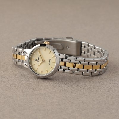 Diese Festina Uhr hat ein Edelstahl Gehäuse mit einem Durchmesser von 23 mm und ist mit einem Armband aus Edelstahl versehen. In der Uhr arbeitet ein Miyota Uhrwerk. Das Glas der Uhr besteht aus Mineral - Glas.
