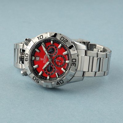 Diese Festina Uhr hat ein Edelstahl Gehäuse mit einem Durchmesser von 45 mm und ist mit einem Armband aus Edelstahl versehen. In der Uhr arbeitet ein Seiko Instruments Inc. Uhrwerk. Das Glas der Uhr besteht aus Mineral - Glas.