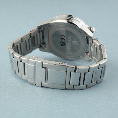 Diese Festina Uhr hat ein Edelstahl Gehäuse mit einem Durchmesser von 45 mm und ist mit einem Armband aus Edelstahl versehen. In der Uhr arbeitet ein Seiko Instruments Inc. Uhrwerk. Das Glas der Uhr besteht aus Mineral - Glas.