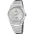 Diese Festina Uhr hat ein Edelstahl Gehäuse mit einem Durchmesser von 40 mm und ist mit einem Armband aus Edelstahl versehen. In der Uhr arbeitet ein Ronda Uhrwerk. Das Glas der Uhr besteht aus Sapphir - Glas.