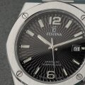 Diese Festina Uhr hat ein Edelstahl Gehäuse mit einem Durchmesser von 42 mm und ist mit einem Armband aus Edelstahl versehen. In der Uhr arbeitet ein Ronda Uhrwerk. Das Glas der Uhr besteht aus Sapphir - Glas.