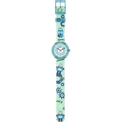 Diese Flik Flak Uhr hat ein Bio-Kunststoff Gehäuse mit einem Durchmesser von 30 mm und ist mit einem Armband aus Textil versehen. In der Uhr arbeitet ein ETA Uhrwerk. Das Glas der Uhr besteht aus Acryl - Glas.