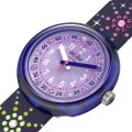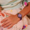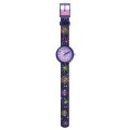 Diese Flik Flak Uhr hat ein Bio-Kunststoff Gehäuse mit einem Durchmesser von 30 mm und ist mit einem Armband aus Textil versehen. In der Uhr arbeitet ein ETA Uhrwerk. Das Glas der Uhr besteht aus Acryl - Glas.