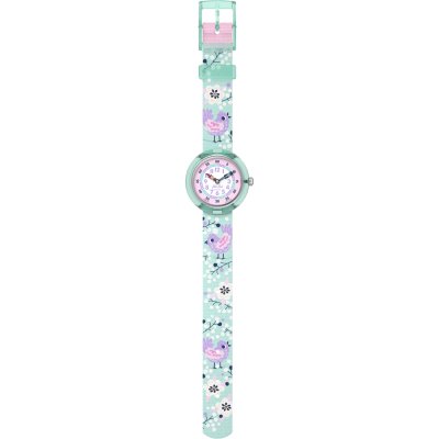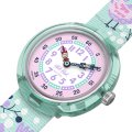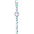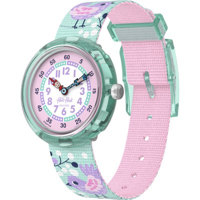 Diese Flik Flak Uhr hat ein Bio-Kunststoff Gehäuse mit einem Durchmesser von 30 mm und ist mit einem Armband aus Textil versehen. In der Uhr arbeitet ein ETA Uhrwerk. Das Glas der Uhr besteht aus Acryl - Glas.