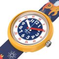 Diese Flik Flak Uhr hat ein Bio-Kunststoff Gehäuse mit einem Durchmesser von 30 mm und ist mit einem Armband aus Textil versehen. In der Uhr arbeitet ein ETA Uhrwerk. Das Glas der Uhr besteht aus Acryl - Glas.