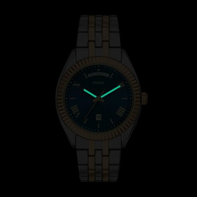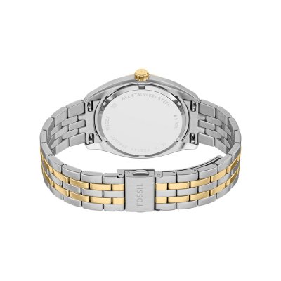 Diese Fossil Uhr hat ein Edelstahl Gehäuse mit einem Durchmesser von 42 mm und ist mit einem Armband aus Edelstahl versehen. In der Uhr arbeitet ein Seiko Instruments Inc. Uhrwerk. Das Glas der Uhr besteht aus Mineral - Glas.