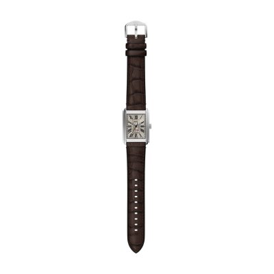 Diese Fossil Uhr hat ein Edelstahl Gehäuse mit einem Durchmesser von 30 mm und ist mit einem Armband aus Leder versehen. In der Uhr arbeitet ein Miyota Uhrwerk. Das Glas der Uhr besteht aus Mineral - Glas.