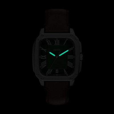 Diese Fossil Uhr hat ein Edelstahl Gehäuse mit einem Durchmesser von 42 mm und ist mit einem Armband aus Leder versehen. In der Uhr arbeitet ein Seiko Instruments Inc. Uhrwerk. Das Glas der Uhr besteht aus Mineral - Glas.