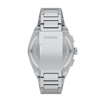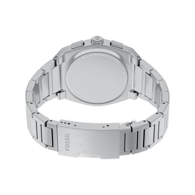 Diese Fossil Uhr hat ein Edelstahl Gehäuse mit einem Durchmesser von 44 mm und ist mit einem Armband aus Edelstahl versehen. In der Uhr arbeitet ein Seiko Instruments Inc. Uhrwerk. Das Glas der Uhr besteht aus Mineral - Glas.