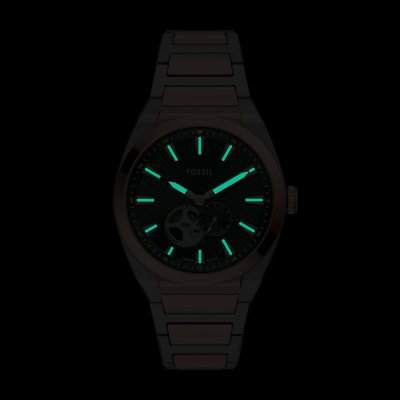 Diese Fossil Uhr hat ein Edelstahl Gehäuse mit einem Durchmesser von 42 mm und ist mit einem Armband aus Edelstahl versehen. In der Uhr arbeitet ein Miyota Uhrwerk. Das Glas der Uhr besteht aus Mineral - Glas.