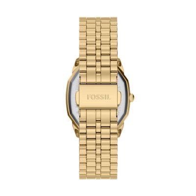 Diese Fossil Uhr hat ein Edelstahl Gehäuse mit einem Durchmesser von 27 mm und ist mit einem Armband aus Edelstahl versehen. In der Uhr arbeitet ein Miyota Uhrwerk. Das Glas der Uhr besteht aus Mineral - Glas.