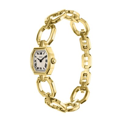Diese Fossil Uhr hat ein Edelstahl Gehäuse mit einem Durchmesser von 20 mm und ist mit einem Armband aus Edelstahl versehen. In der Uhr arbeitet ein Seiko Instruments Inc. Uhrwerk. Das Glas der Uhr besteht aus Mineral - Glas.