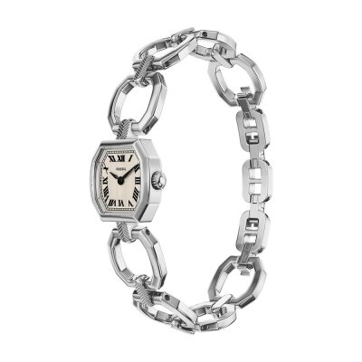 Diese Fossil Uhr hat ein Edelstahl Gehäuse mit einem Durchmesser von 20 mm und ist mit einem Armband aus Edelstahl versehen. In der Uhr arbeitet ein Seiko Instruments Inc. Uhrwerk. Das Glas der Uhr besteht aus Mineral - Glas.