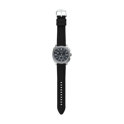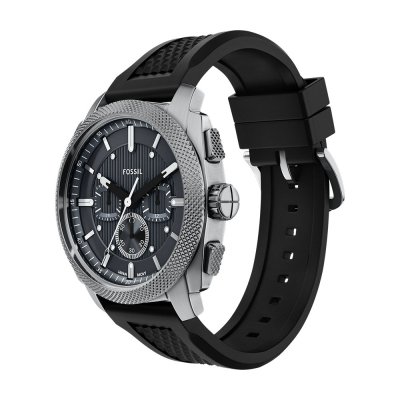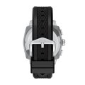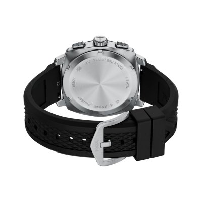 Diese Fossil Uhr hat ein Edelstahl Gehäuse mit einem Durchmesser von 44 mm und ist mit einem Armband aus Kautschuk versehen. In der Uhr arbeitet ein Miyota Uhrwerk. Das Glas der Uhr besteht aus Mineral - Glas.