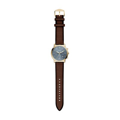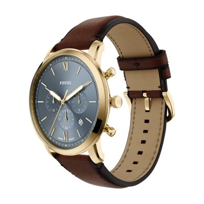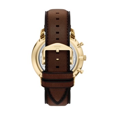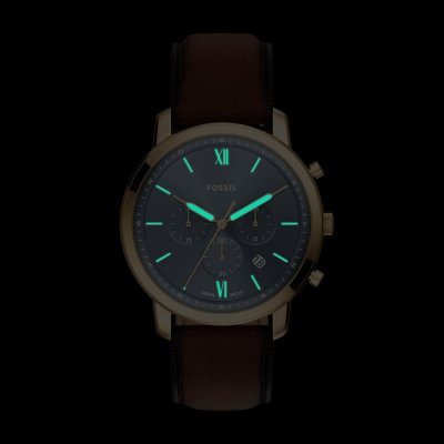Diese Fossil Uhr hat ein Edelstahl Gehäuse mit einem Durchmesser von 44 mm und ist mit einem Armband aus Leder versehen. In der Uhr arbeitet ein Miyota Uhrwerk. Das Glas der Uhr besteht aus Mineral - Glas.