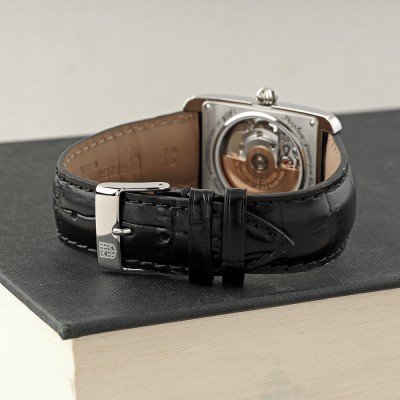 Die Uhr Frederique Constant Classics Carrée ist ein fester Bestandteil der Kollektion. Die Familie wurde um eine Heart Beat Automatic Version erweitert. Eine diskrete Öffnung bei zwölf Uhr enthüllt das Uhrwerk: das schlagende Herz der Uhr. Eine raffinierte Kreation, angetrieben von einem Automatikkaliber FC-311 (basierend auf einem Sellita SW-200) mit einer Gangreserve von 38 Stunden. Das Design der Uhr ist im klassischen Art déco-Stil gehalten, mit einem kontrastierenden Fischgrätenmuster in der Mitte des Zifferblatts und klaren, scharfen Dauphine-Zeigern. Eine Uhr für Liebhaber von klassischen Luxusuhren.