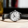 Die Frederique Constant Classics Automatic ist eine wirklich klassische Armbanduhr. Ein schnörkelloses 40-mm-Edelstahlgehäuse, römische Ziffern, ein guillochiertes Zifferblatt und Breguet-Zeiger bieten alles, was man braucht. Auf den ersten Blick eine schlichte Uhr, aber die Qualität zeigt sich in den Details wie dem Schweizer Automatikwerk FC-303 (basierend auf dem Sellita SW200-1) mit 26 Steinen und 38 Stunden Gangreserve. Sie ist eine unaufdringliche, aber schicke Uhr für den täglichen Gebrauch.
