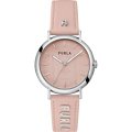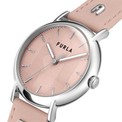 Diese Furla Uhr hat ein Edelstahl Gehäuse mit einem Durchmesser von 38 mm und ist mit einem Armband aus Leder versehen.