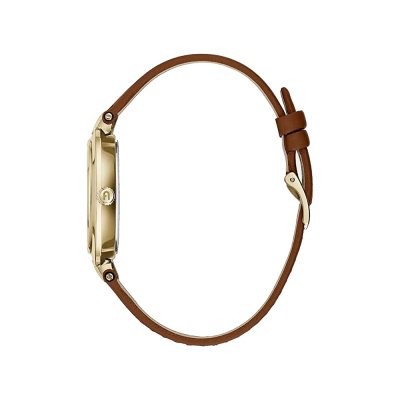 Diese Furla Uhr hat ein Edelstahl Gehäuse mit einem Durchmesser von 30 mm und ist mit einem Armband aus Leder versehen.