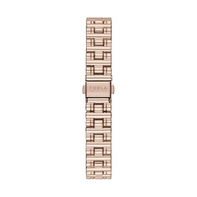 Diese Furla Uhr hat ein Edelstahl Gehäuse mit einem Durchmesser von 30 mm und ist mit einem Armband aus Edelstahl versehen.