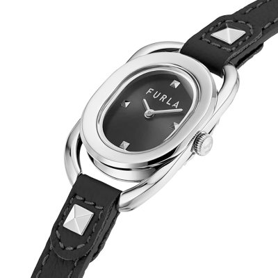 Diese Furla Uhr hat ein Edelstahl Gehäuse mit einem Durchmesser von 24 mm und ist mit einem Armband aus Leder versehen.