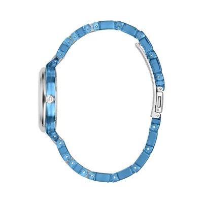 Diese Furla Uhr hat ein Edelstahl und Kunststoff Gehäuse mit einem Durchmesser von 34 mm und ist mit einem Armband aus Edelstahl und Kunststoff versehen.