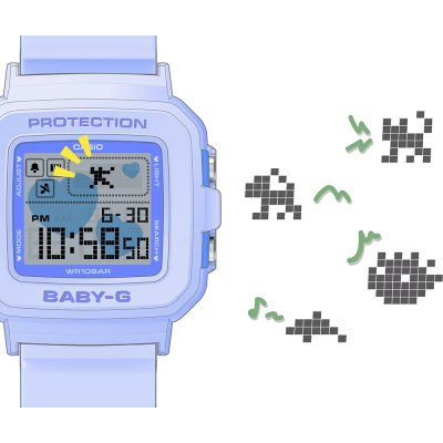 Diese G-Shock Uhr hat ein Kunststoff / Harz Gehäuse mit einem Durchmesser von 39 mm und ist mit einem Armband aus Kunstharz versehen. In der Uhr arbeitet ein Casio Uhrwerk. Das Glas der Uhr besteht aus Mineral - Glas.