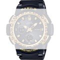 Dieses G-Shock Uhrarmband ist aus kunststoff/Resin gefertigt und wird mit druckstifte an der Uhr befestigt. Das Band hat eine Breite von 23.5 mm und wird mit einer dornschließe geschlossen. Das Uhrenarmband hat keine gerade Halterung, was bedeutet, dass dieses Band nur für die unten aufgeführten Uhren geeignet ist.